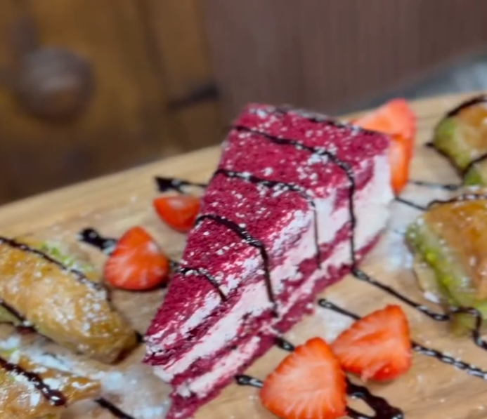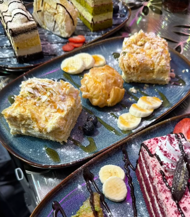 Sluit af met zoetigheden uit de regio: (bijv.) romige melk- en saffrondesserts met pistache, zijdezachte puddingen en verkoelende ijsspecialiteiten. Licht geparfumeerd met rozenwater of kardemom voor die typische, elegante finish.