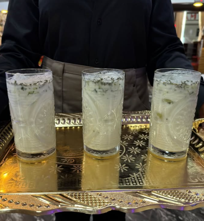 Ontdek warme en koude klassiekers die passen bij onze keuken: geurige thee met kardemom, verfrissende yoghurt- en vruchtendranken, en een selectie aan frisdranken en koffie. Vraag ons team naar suggesties voor de perfecte pairing.